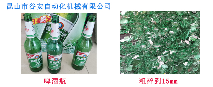 谷安啤酒瓶粉碎機(jī)系列可以粉碎各類玻璃瓶,如啤酒瓶,醬油瓶,各類白酒瓶等。