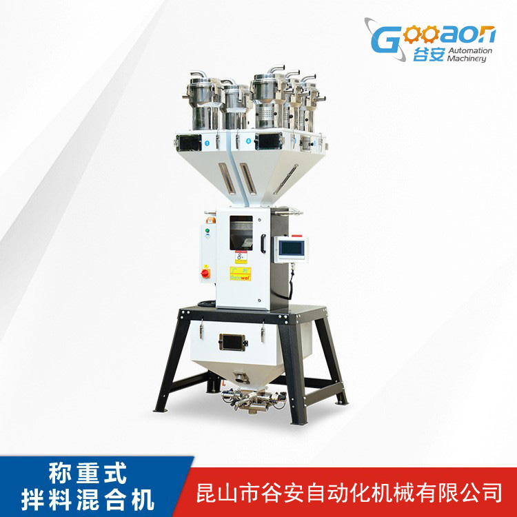 在擠吹工藝中,主原料、色母料和回收料通過秤重式混料機(jī),按比例添加。谷安的秤重式拌料混合機(jī)的產(chǎn)量范圍為40~3000kg/hr,計(jì)量組分從2到8組分不等。 配備乙太網(wǎng)接口,使用軟件通過此端口上傳已生產(chǎn)的混料配比數(shù)據(jù),便于生產(chǎn)品質(zhì)控制;同時(shí)可以通過此端口實(shí)現(xiàn)與機(jī)臺(tái)的集中監(jiān)控(基于MODBUS-TCP/IP協(xié)議)。