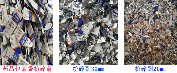 答:視薄膜的厚度,以厚度0.04mm的膜料為例,谷安粉碎機最小能粉碎至4mm以下。